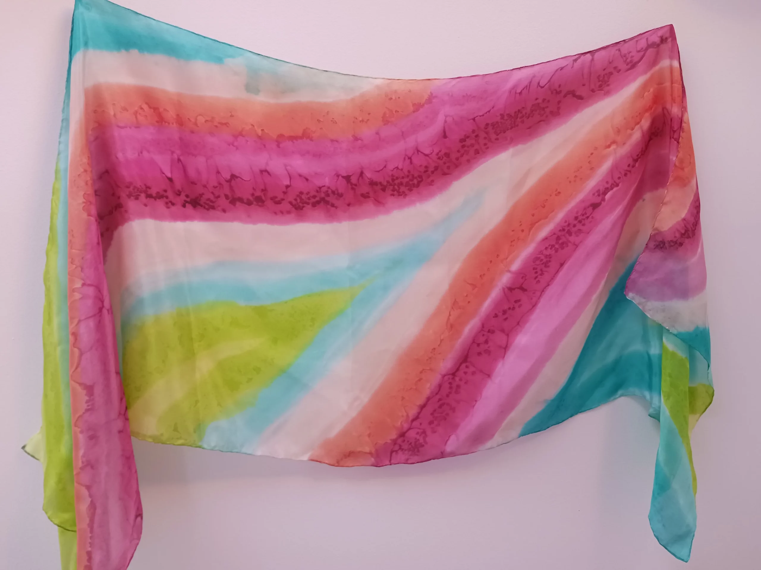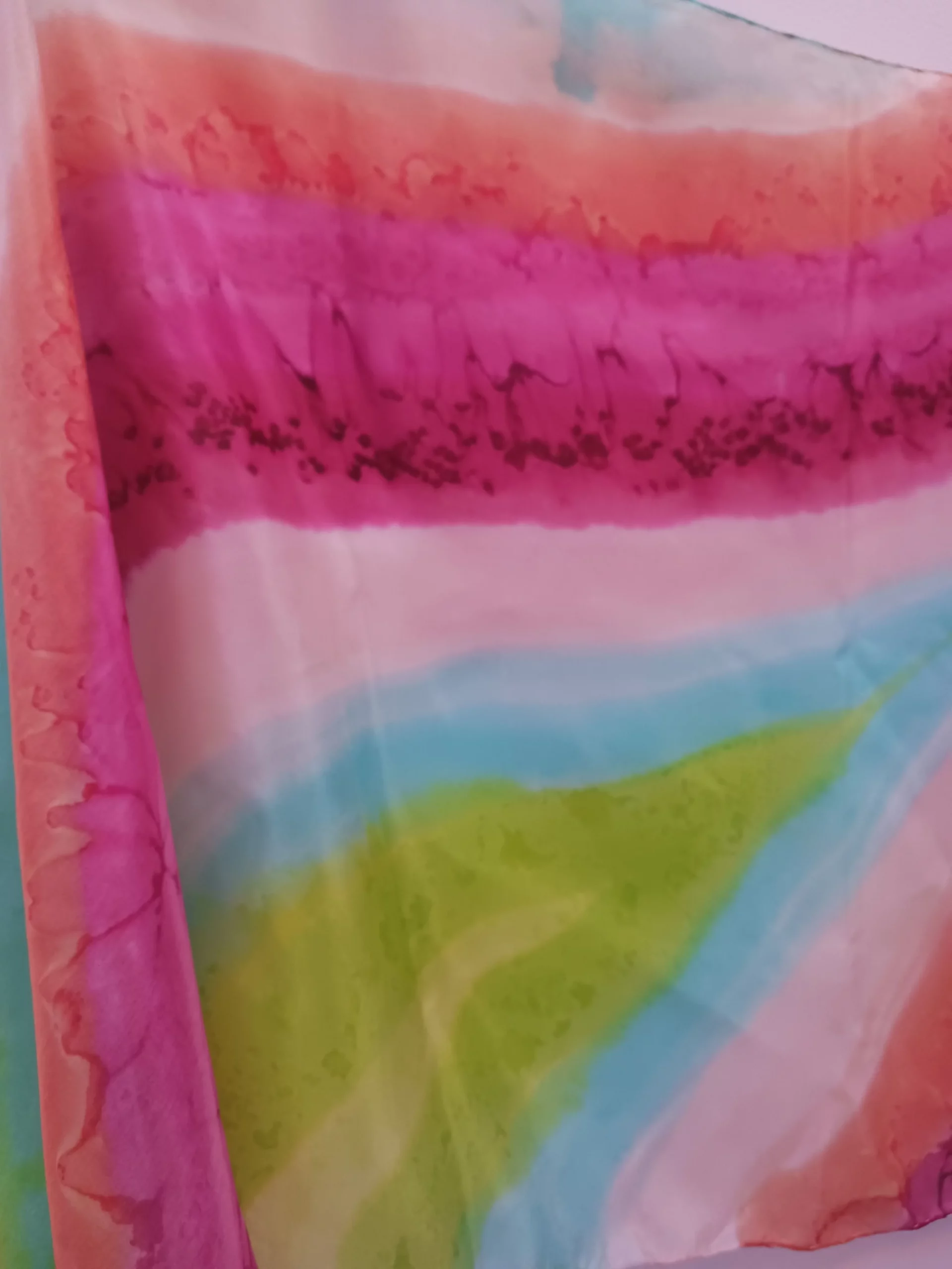 • Técnica: Pintura a mano sobre seda, efecto con sal y fijación al vapor